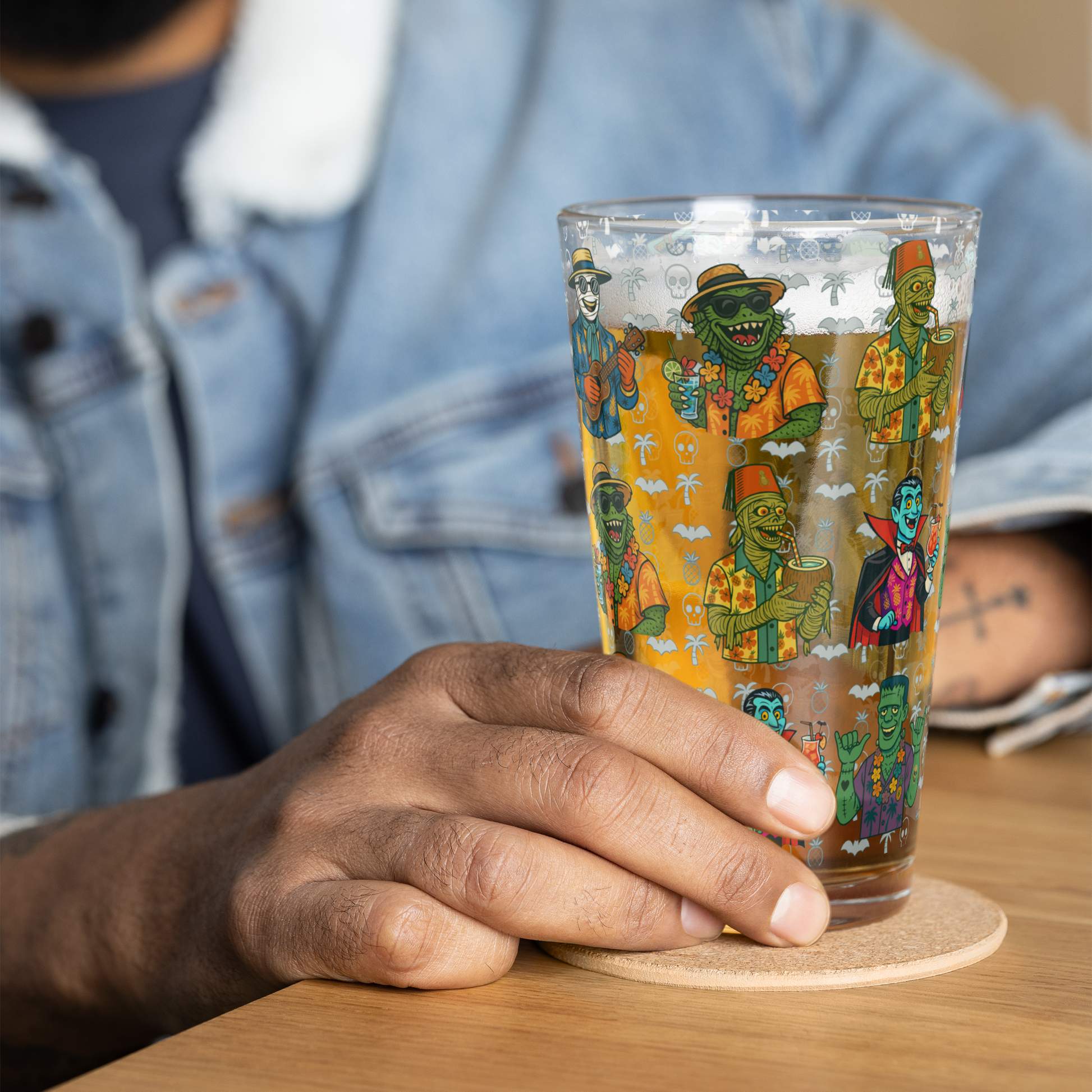 Meet the Party Monsters, a new design by Aaron Sagers where classic horror meets island vibes in a playful mashup of universally beloved movie monsters and tiki cocktail culture. Picture Dracula in a Hawaiian shirt, the Creature sipping a Mai Tai, and the Mummy lounging with a piña colada (his hair is perfect, of course) — monstrously fun and tropically twisted.