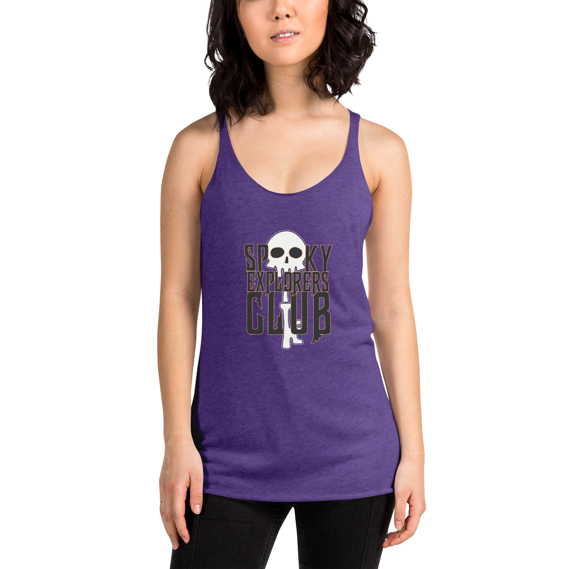 Foolish mortals unite and show your pride in being a member of the Spooky Explorers Club, the not-so-scary paranormal and adventure company, launched by Aaron Sagers. This racerback tank is soft, lightweight, and form-fitting with a flattering cut and raw edge seams for an edgy touch.