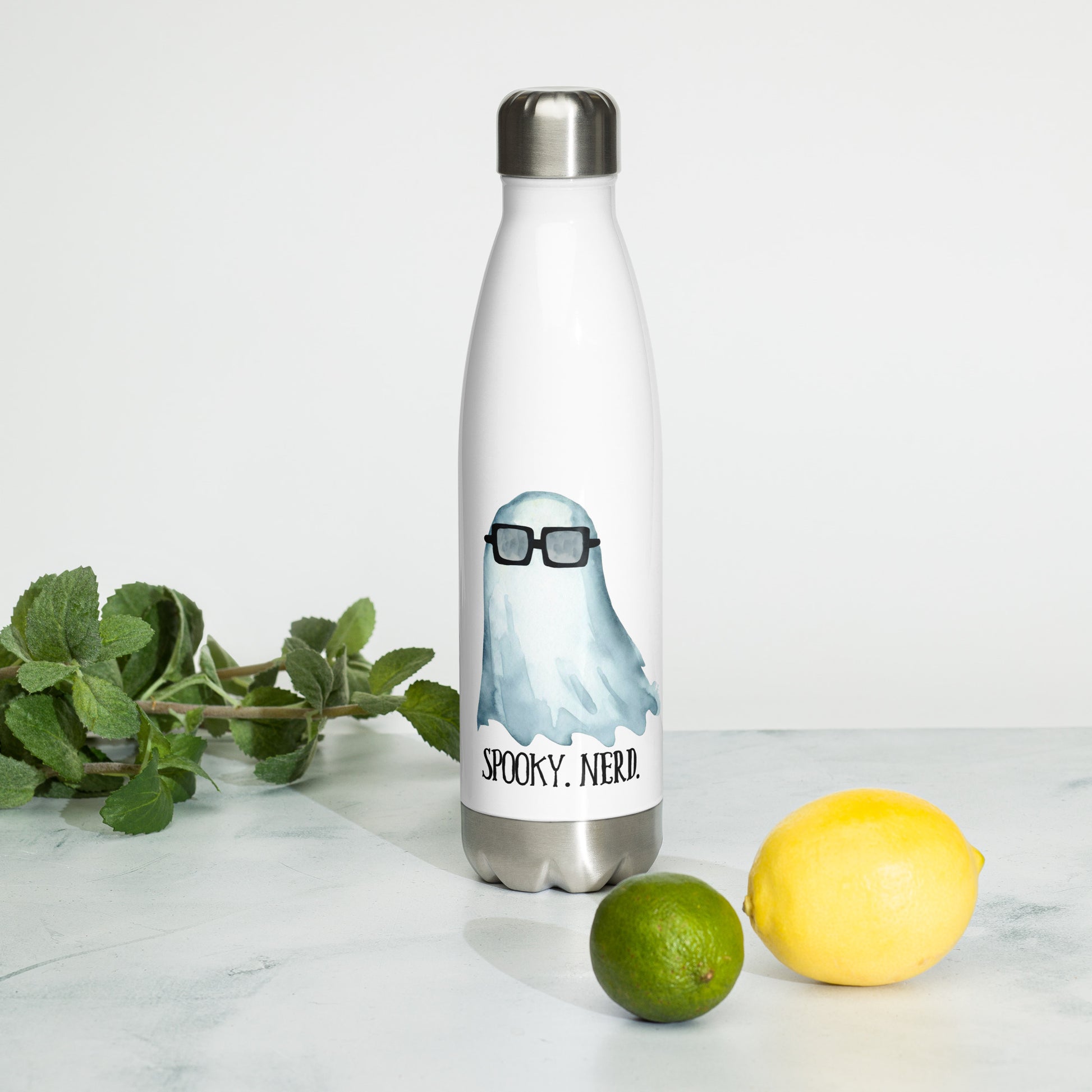 Spooky Nerd White Stainless Steel Water Bottle