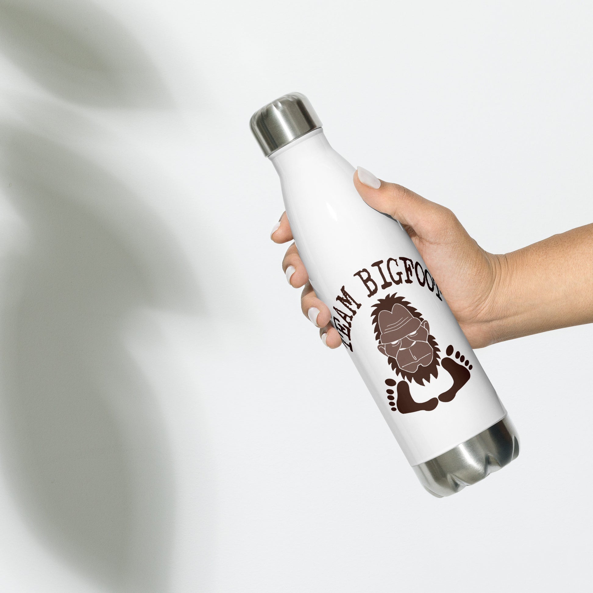 Show your team loyalty to the Big Guy with this paranormal and cryptozoology themed water bottle designed by Aaron Sagers. Whether you call him Sasquatch, Bigfoot, Skunk Ape, or Yowie, this 17-ounce, double-walled stainless steel water bottle is perfect for your daily outings as a fan of the missing link. It will keep your drink of choice hot or cold for hours. It also features an odor- and leak-proof cap. Throw it in your car's cup holder on your way to work, take it with you on hikes, or toss it in your bag for any time you get thirsty.
